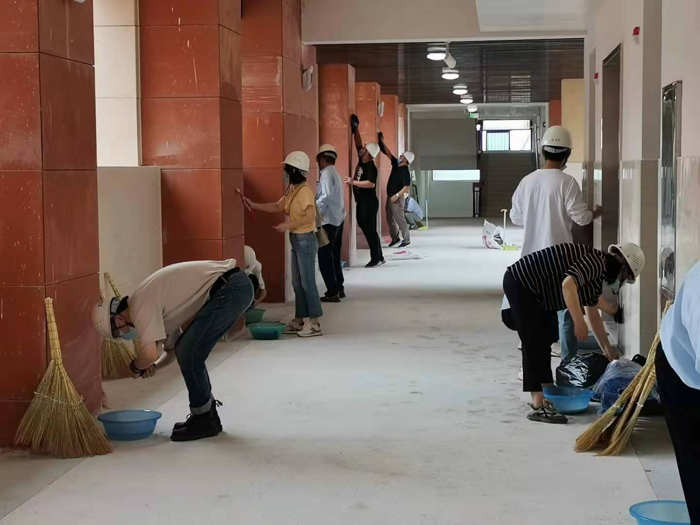 8月28日,裝飾公司組織機(jī)關(guān)和各項(xiàng)目管理人員近40人利用周末休息時(shí)間開展義務(wù)勞動(dòng),對(duì)學(xué)校國際部進(jìn)行了開荒保潔。領(lǐng)導(dǎo)率先、黨員帶頭,大家一早來到工地現(xiàn)場,迅速投入到保潔工作中。清掃完后,大家觀摩了該項(xiàng)目圖書館、報(bào)告廳、體育場、羽毛球館、籃球館和游泳館等施工情況,了解場館頂面、墻面以及地面的選材、設(shè)計(jì)和施工技巧。