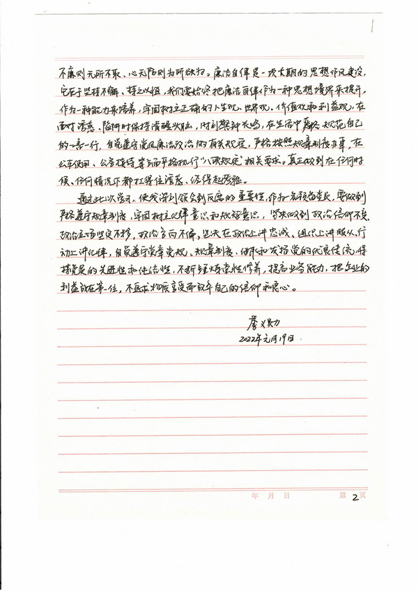 觀看完5集紀(jì)錄片后,大家還撰寫心得體會,談感想、書體會,進(jìn)一步鞏固警示教育成果。