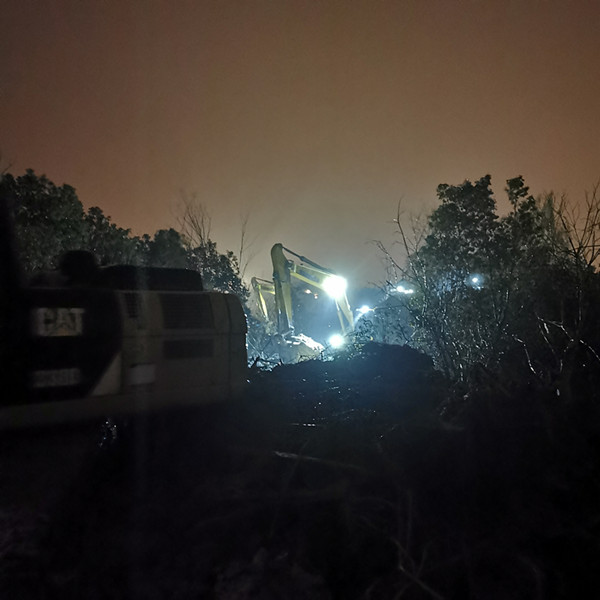 3月20日風(fēng)雨交加的夜晚,花崗鎮(zhèn)董崗健康驛站西側(cè)周邊的安徽三建12臺(tái)挖掘機(jī)機(jī)臂上的燈徹夜亮著,30多名職工經(jīng)過(guò)一夜艱苦鏖戰(zhàn),順利將董崗健康驛站西側(cè)河塘(原韓塘泄洪溝區(qū)域)積水引流至肖小河左支流下游,解決了花崗鎮(zhèn)董崗健康驛站可能面臨的積水內(nèi)澇風(fēng)險(xiǎn)。