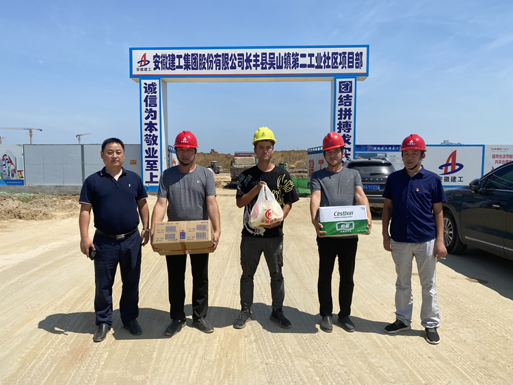 為做好防暑降溫工作,促進項目安全生產(chǎn),自7月13日開始,基礎公司領導班子成員先后前往長豐縣吳山鎮(zhèn)第二社區(qū)等6個項目開展送清涼活動,為在高溫下作業(yè)的一線工作人員送去礦泉水、綠豆、白糖、藿香正氣水等防暑降溫用品,給他們送去烈日下的清涼和關懷。