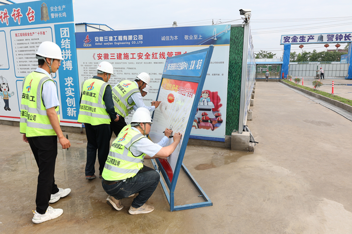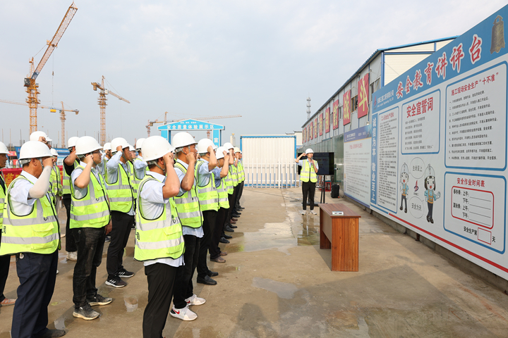 為筑牢項(xiàng)目安全防線,營造安全生產(chǎn)氛圍,6月1日上午七時(shí),蕪湖分公司“安全生產(chǎn)月”活動啟動儀式在安徽省公共衛(wèi)生臨床中心(蕪湖)項(xiàng)目正式拉開帷幕。蕪湖分公司全體領(lǐng)導(dǎo)班子、各科室負(fù)責(zé)人、蕪湖區(qū)域各項(xiàng)目主要管理人員參加儀式,并邀請了該項(xiàng)目聯(lián)合體單位安徽南天建設(shè)有限公司總經(jīng)理張行武、經(jīng)理李趙芳等出席本次活動的啟動儀式。