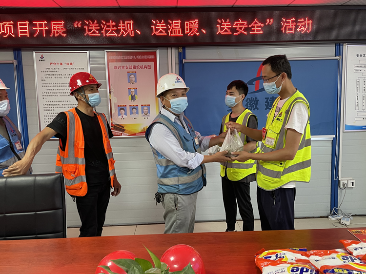今年6月是第21個全國“安全生產(chǎn)月”,以“遵守安全生產(chǎn)法、當(dāng)好第一責(zé)任人”為主題。按照《廬陽區(qū)重點中心2022年“安全生產(chǎn)月”和“安全生產(chǎn)廬陽行”》活動方案統(tǒng)一部署要求,6月2日下午,正值端午來臨之際,八公司五里片區(qū)項目黨支部組織項目黨員在一線班組職工中開展“送法規(guī)、送溫暖、送安全”活動,項目黨員帶領(lǐng)大家觀看了習(xí)近平總書記關(guān)于安全生產(chǎn)重要論述《生命重于泰山》專題紀(jì)錄片及近期發(fā)生的安全事故相關(guān)視頻,同時給大家發(fā)放《民法典與生活同行》普法宣傳冊,高溫防曬服、洗衣粉、粽子、咸鴨蛋和節(jié)日祝福。將安全生產(chǎn)與聯(lián)系群眾、服務(wù)職工相結(jié)合,極大地提高了廣大一線班組職工的安全意識,在職工中廣受好評。