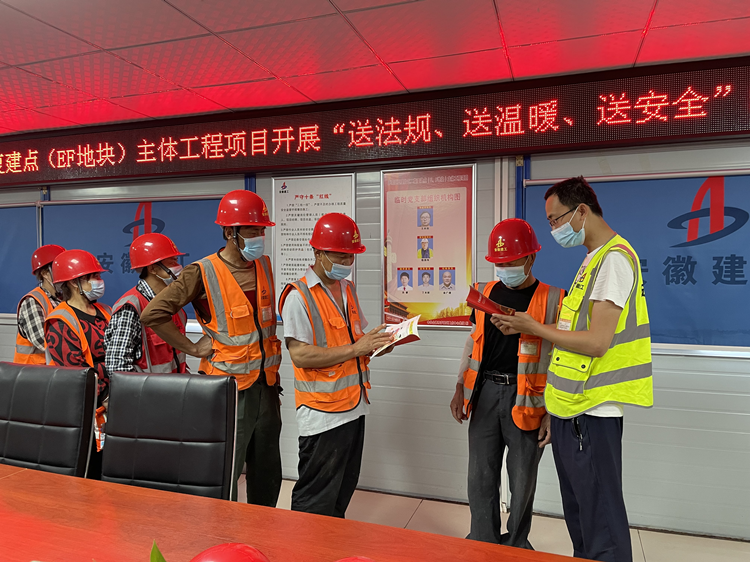 八公司五里片區(qū)二期復(fù)建點(E、F地塊)主體工程項目開展“送法規(guī)、送溫暖、送安全”活動