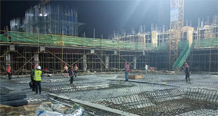 夜晚,項(xiàng)目搶工的燈光劃破了嚴(yán)店靜謐的夜空。項(xiàng)目部施工、技術(shù)、安全各部門各年齡段積極響應(yīng)勞動(dòng)競賽號(hào)召投入現(xiàn)場工作,放線、澆砼、抄平,身著黃色馬甲的管理人員“點(diǎn)綴”著現(xiàn)場的每一處。