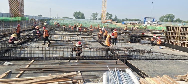 入夏以來,合肥市持續(xù)高溫給現(xiàn)場施工增添了很大難度,在保障現(xiàn)場施工不停滯的同時(shí)做好工人的身體健康管理,項(xiàng)目立即調(diào)整現(xiàn)場作業(yè)時(shí)間,“休中間,戰(zhàn)兩邊”。晨光熹微,工人同志已經(jīng)熱火朝天地進(jìn)行現(xiàn)場建設(shè);晚霞滿天,工人同志又開始晚間時(shí)段的搶工建設(shè)。為確保八地塊1#樓人防底板鋼筋順利通過驗(yàn)收,棟號(hào)長組織班組每天施工到深夜,為勞務(wù)工人提供水和泡面,人性化的服務(wù)充分調(diào)動(dòng)工人的積極性,最終,人防驗(yàn)收按時(shí)完成,順利通過驗(yàn)收,施工質(zhì)量還得到了人防站的認(rèn)可。