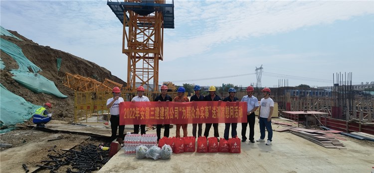 8月3日,驕陽似火,熱風(fēng)撲面,建機(jī)公司黨總支書記李朝進(jìn)一行赴長豐縣吳山鎮(zhèn)第二工業(yè)社區(qū)項(xiàng)目部開展“送清涼”慰問活動,為項(xiàng)目部一線職工發(fā)放毛巾、香皂、人丹、清涼油、風(fēng)油精、飲料、礦泉水等防暑降溫物資。分公司有關(guān)部門負(fù)責(zé)人參加慰問活動。
