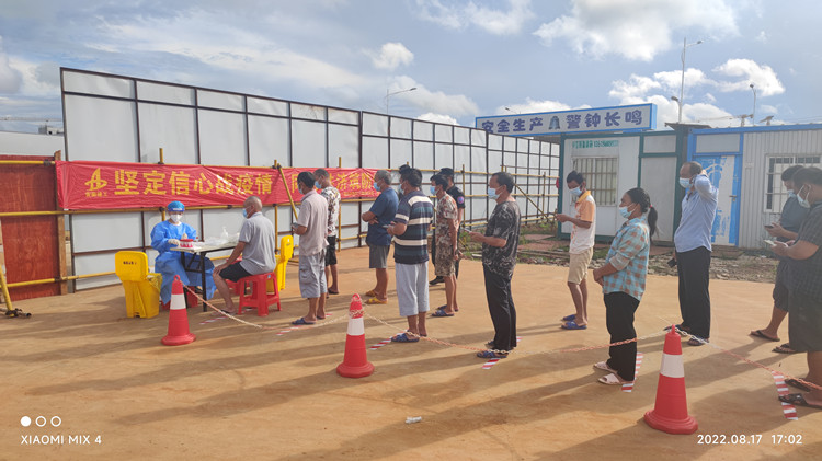 8月4日,海南省出現(xiàn)新一輪新冠肺炎疫情以來(lái),海口市政府持續(xù)發(fā)布多次全市靜態(tài)管理通知,嚴(yán)禁人員和車輛流動(dòng),并要求項(xiàng)目所有人員“一天一檢”。項(xiàng)目部積極響應(yīng)??谑形?、市政府疫情防控安排,果斷啟動(dòng)項(xiàng)目疫情防控應(yīng)急預(yù)案,將項(xiàng)目各出入口進(jìn)行封閉,執(zhí)行全面封閉管理。全面摸排更新項(xiàng)目所有人員“一人一檔”資料,確保不漏一人,嚴(yán)禁外來(lái)人員、嚴(yán)格控制外來(lái)物資車輛進(jìn)入。