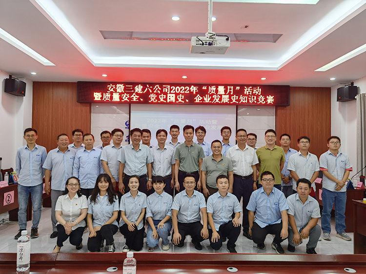 為迎接黨的二十大勝利召開,深入貫徹落實以“推動質(zhì)量變革創(chuàng)新,促進質(zhì)量強國建設(shè)”為主題的“質(zhì)量月”活動,9月23日下午,六公司在合肥市軌道交通4號線4標(biāo)段項目部組織開展2022年“質(zhì)量月”活動暨質(zhì)量安全、黨史國史、企業(yè)發(fā)展史知識競賽。