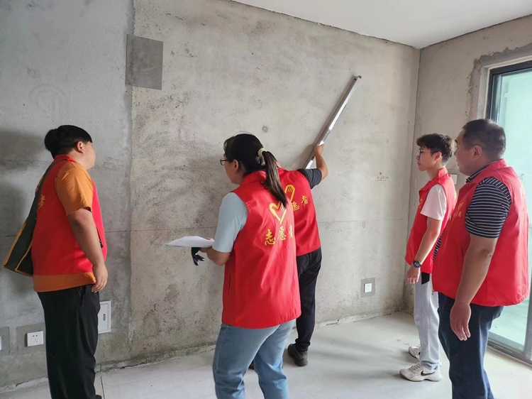 活動中,志愿者們對即將要交房的樓棟嚴格按照房屋驗收標準進行查驗,對水電、門鎖、窗戶、屋內(nèi)設(shè)施、樓體的外立面觀感及室外工程的實用性質(zhì)量等內(nèi)容仔細檢查,確保問題能夠及時解決,爭取在交房時給每一位業(yè)主最好的體驗。