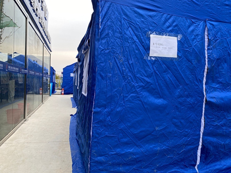 期間,項(xiàng)目加強(qiáng)對務(wù)工人員的日常疫情管控,嚴(yán)格落實(shí)核酸檢測、健康管理、制定應(yīng)急預(yù)案等防疫措施。為保證項(xiàng)目安全生產(chǎn),在辦公區(qū)附近搭設(shè)10余個(gè)帳篷,為一線班組提供臨時(shí)住所,并為其解決就餐、洗漱等問題。既不耽誤一線班組因防疫而造成務(wù)工困難,又為項(xiàng)目安全生產(chǎn)提供了強(qiáng)有力的生活保障,在班組中好評(píng)不斷。
