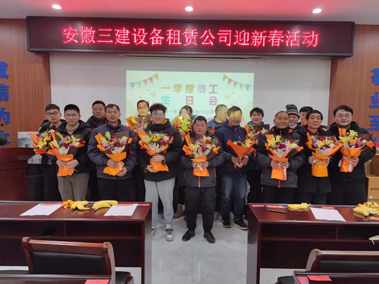 臨近年關(guān),喜氣洋洋,大家歡聚一堂,共賀新春之喜。在慶新春之喜之余,設(shè)備租賃公司還為一季度過生日的員工準(zhǔn)備了鮮花和蛋糕卡,為他們共同慶生,在一片歡聲笑語之中,大家臉上都洋溢著純真的笑容,感受著大家庭的溫暖。