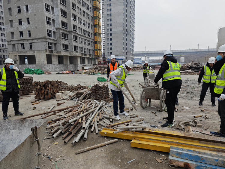 新年伊始,萬象更新。水岸人家項目在復(fù)工前夕組織25名管理人員開展義務(wù)勞動活動。期間,黨員同志沖鋒在前,行動有序,將地庫頂板上不同規(guī)格的鋼管集中碼放整齊,零星扣件整理歸堆。有效將地將庫頂板清理整齊,同時減少了項目部用工支出,切實將降本增效落到實處。