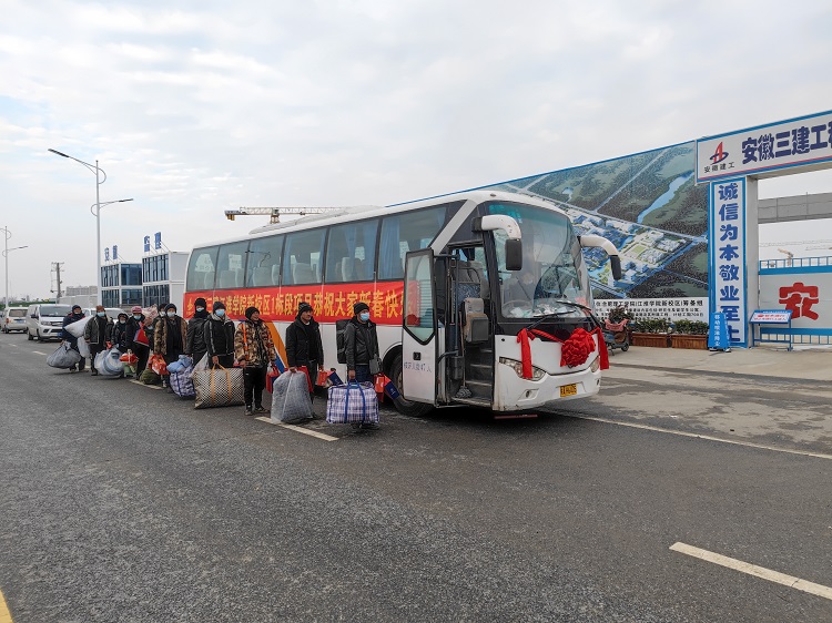 近日,安徽大學(xué)江淮學(xué)院新校區(qū)項(xiàng)目的參建工人們陸陸續(xù)續(xù)地開(kāi)始了返鄉(xiāng)之旅,期盼著平安回家和親人團(tuán)聚新年。考慮到從工地到火車(chē)站距離較遠(yuǎn)以及攜帶行李不便等問(wèn)題,項(xiàng)目黨支部經(jīng)研究,決定為工友們提供“愛(ài)心專車(chē)”服務(wù),免費(fèi)用專線大巴車(chē)送他們前往火車(chē)站。通過(guò)這種“點(diǎn)對(duì)點(diǎn)、一站式”的服務(wù),解決工友們交通不便的問(wèn)題。
