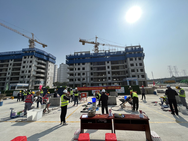 安徽省裝配式職業(yè)技能大賽(灌漿組)合肥代表隊賽前對抗賽在合肥濱湖科學城BK202108地塊項目舉辦