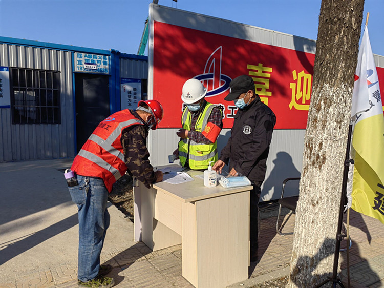 前期圍墻未完全封閉,給防疫帶來一定的難度,為防止工人未登記入場私自出入,項(xiàng)目經(jīng)理崔沖雙管齊下,帶領(lǐng)項(xiàng)目部制定防疫方案。一是采取項(xiàng)目管理人員現(xiàn)場巡查制度,實(shí)行網(wǎng)格化管理。二是制定安全帽每日進(jìn)場貼牌,對入口登記過的工人安全帽上貼上安全牌,便于巡查人員識別當(dāng)日現(xiàn)場人員是否按要求進(jìn)場,此方式得到了業(yè)主和監(jiān)理單位充分認(rèn)可。