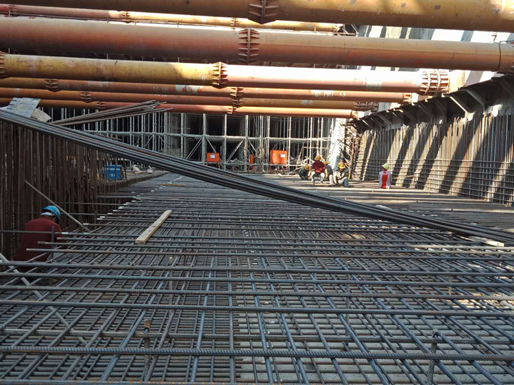 在一公司藝境項目的最后一塊地下室頂板上,工人師傅們頭戴安全帽,手拿工具,綁扎鋼筋、支模板、澆筑混凝土,揮灑激情,全心全意的為項目結(jié)構(gòu)封頂做努力。