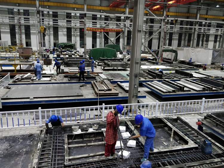 為配合沁園、康利園等項目項目進度要求,工業(yè)公司國慶節(jié)期間,各生產(chǎn)線活力全開,根據(jù)項目現(xiàn)場需求適時調(diào)整生產(chǎn)線。圖為9月30日深夜降臨,還有10分鐘就是祖國第六十九個生日,建筑工業(yè)公司職工進行墻板生產(chǎn)。