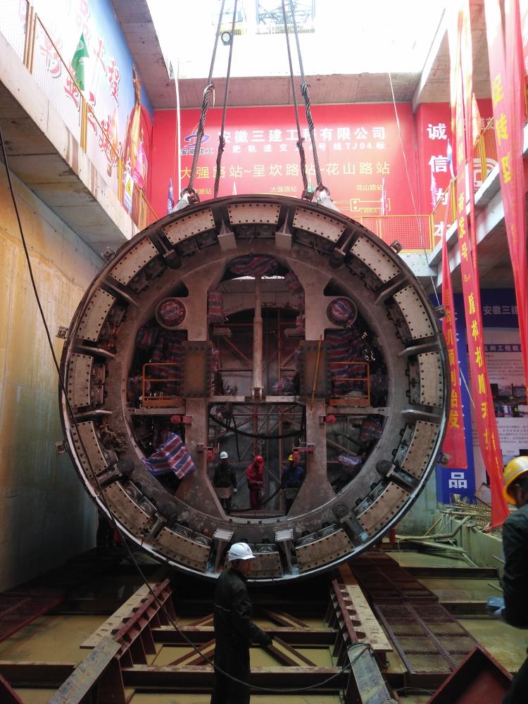 11月23日下午13:00,隨著巨大的盾構(gòu)刀盤緩緩吊入大強路站負二層作業(yè)面,安徽三建“奮發(fā)二號”盾構(gòu)機組件全部順利下井,待組裝完成后將與“奮發(fā)一號”盾構(gòu)機共同完成呈大區(qū)間的盾構(gòu)施工。