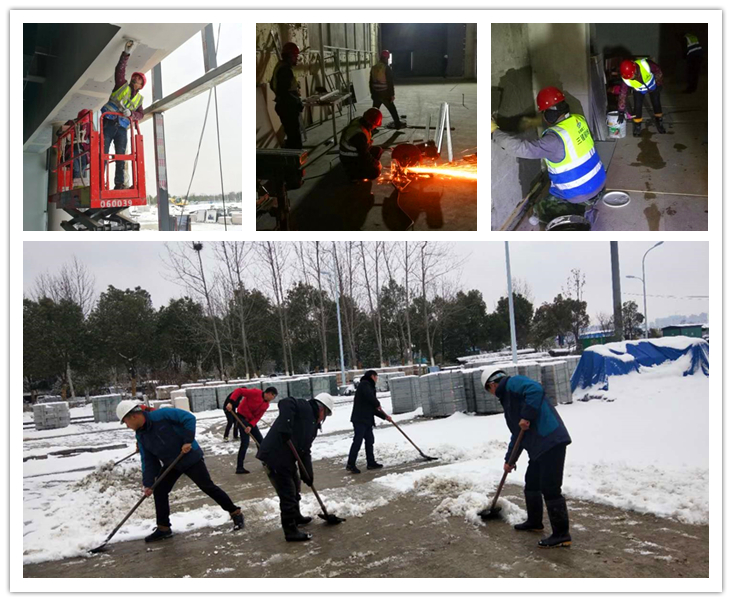 經(jīng)過(guò)一夜的大雪,2月8日大年初四的安徽創(chuàng)新館項(xiàng)目披上了一層白衣,當(dāng)全國(guó)人民還沉浸在歡度春節(jié)的喜慶氛圍里,百余名施工人員已經(jīng)在項(xiàng)目施工現(xiàn)場(chǎng)緊張而有序的忙碌。為了全面貫徹落實(shí)集團(tuán)公司一屆六次職代會(huì)精神,完成2019年集團(tuán)公司的既定目標(biāo),保障工程進(jìn)度和更好地推進(jìn)項(xiàng)目建設(shè)工作,和安徽創(chuàng)新館一樣,安徽三建的許多項(xiàng)目部和工作崗位已經(jīng)陸續(xù)提前復(fù)工,各項(xiàng)工作也在有序開(kāi)展中。截止到2月16日, 四公司、八公司、九公司、安裝公司、基礎(chǔ)公司以及西北公司、海南公司等數(shù)十個(gè)項(xiàng)目已經(jīng)提前復(fù)工,投入到緊張的建設(shè)中。大家力爭(zhēng)為2019年各項(xiàng)工作開(kāi)好頭,為實(shí)現(xiàn)完成全年目標(biāo)奠定基礎(chǔ)。