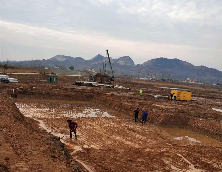圖為湖山半島二標(biāo)段項(xiàng)目人工挖排水溝排除余水