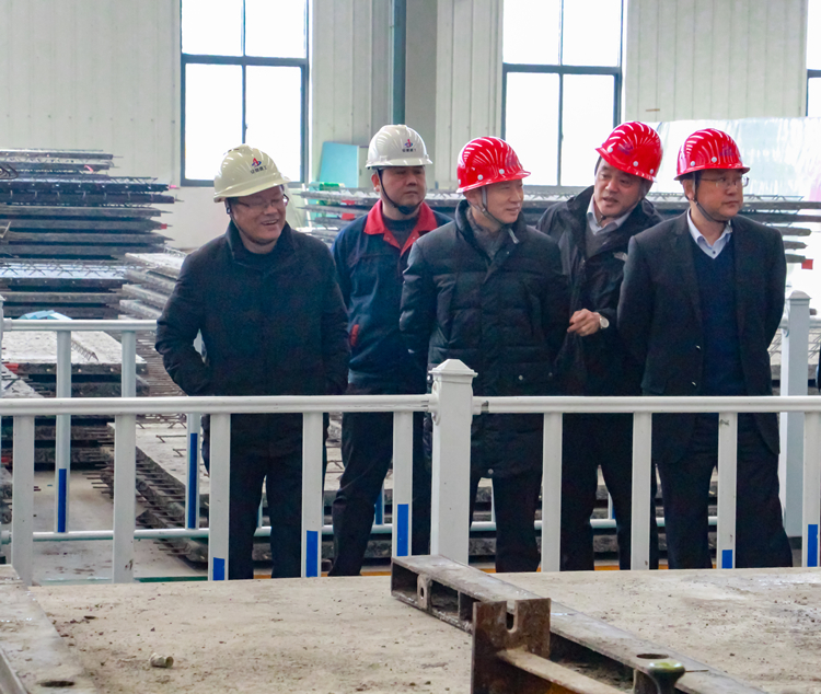 趙時(shí)運(yùn)一行一進(jìn)入廠區(qū),徑直來(lái)到井然有序忙碌的生產(chǎn)車間。在構(gòu)件生產(chǎn)線上,趙時(shí)運(yùn)詳細(xì)察看了裝配式建筑部品部件生產(chǎn)加工過(guò)程、混凝土成型細(xì)節(jié)質(zhì)量、軌道交通管片生產(chǎn)、車間安全文明管理以及生產(chǎn)工藝流程,詳細(xì)詢問(wèn)了目前構(gòu)件廠的生產(chǎn)任務(wù)、生產(chǎn)能力、人員數(shù)量、經(jīng)濟(jì)效益、質(zhì)量安全控制情況以及二期投資建設(shè)用地情況,趙時(shí)運(yùn)給予了充分肯定,并對(duì)集團(tuán)公司裝配式建筑發(fā)展戰(zhàn)略、市場(chǎng)拓展規(guī)劃等給予了指導(dǎo)性意見。安徽三建副總經(jīng)理、工業(yè)公司總經(jīng)理王興明對(duì)下一步規(guī)劃目標(biāo)和發(fā)展思路等做了詳細(xì)匯報(bào)。