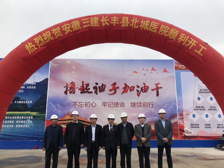 2019年3月28日上午,由十公司承建的長豐縣北城醫(yī)院綜合建設土建及安裝工程一標段舉行開工儀式。中科大附一院(安徽省立醫(yī)院)副院長虞德才、長豐縣重點局局長趙孟、長豐縣衛(wèi)計委主任黃克安、雙墩鎮(zhèn)黨委書記唐世軍,安徽三建公司黨委副書記、總經理何洪春等出席開工儀式。何洪春在開工儀式上要求項目管理團隊要高標準規(guī)劃,起點要高、動作要快、標準要嚴、加強溝通、主動作為,做好精細化和創(chuàng)新管理工作,進一步提升帶動項目管理水平。