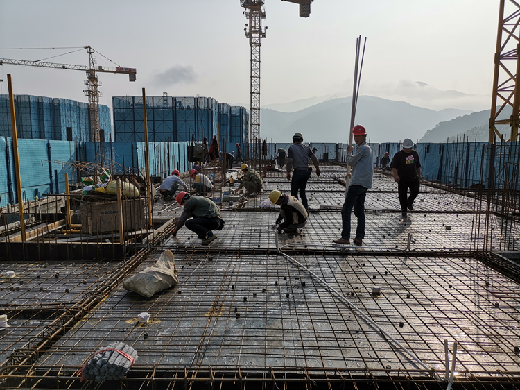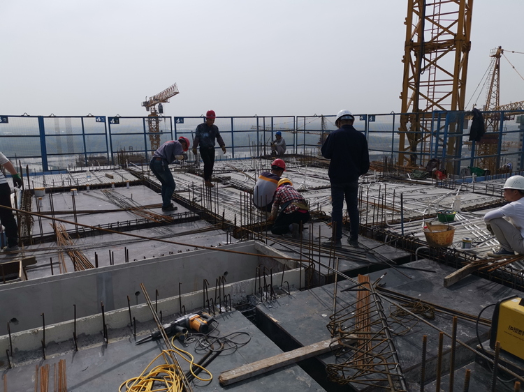 淮南恒大御府首期(一標(biāo)段)項(xiàng)目:五月1號(hào)清晨,天空還在下著小雨,14#樓西單元13層鋼筋工、木工、水電工等冒雨在施工。該項(xiàng)目為了滿(mǎn)足業(yè)主工期要求,爭(zhēng)取在雨季到來(lái)之前多創(chuàng)產(chǎn)值,項(xiàng)目部全體職工搶時(shí)間、爭(zhēng)主動(dòng),“五一”期間,施工現(xiàn)場(chǎng)是一片緊張忙碌的大干場(chǎng)面。當(dāng)晚,夜間各樓棟依然積極組織加班,3#樓木工班組為了不影響進(jìn)度,加班至夜間十點(diǎn)終于完成高低跨部位吊模。