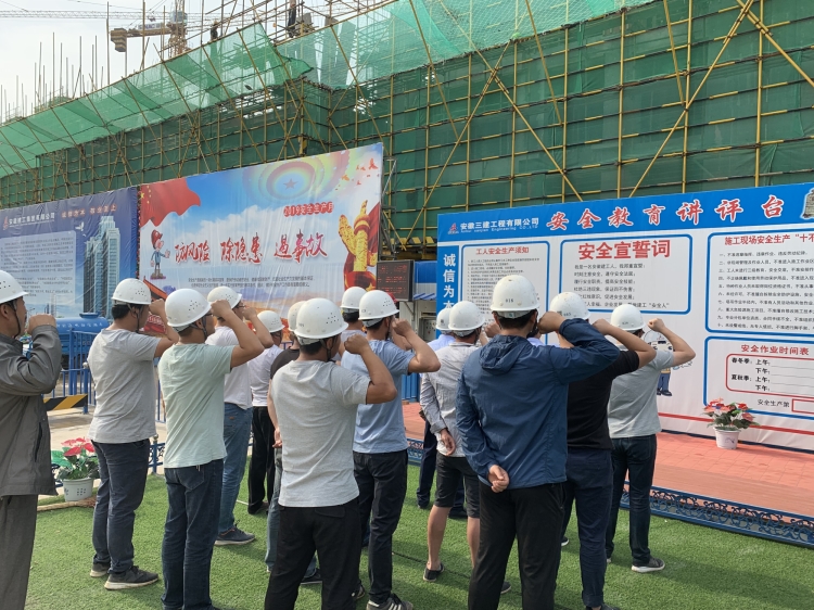 “我是一名安徽建工人,我鄭重宣誓,時(shí)刻注意安全,遵守安全法規(guī),履行安全職責(zé),提高安全技能,杜絕三違現(xiàn)象,保證四不傷害……”在安徽三建所屬多個(gè)項(xiàng)目上,近期都在組織開展安全宣誓活動(dòng)。今年6月份是全國(guó)第18個(gè)“防風(fēng)險(xiǎn)、除隱患、遏事故”“安全生產(chǎn)月”。為牢固樹立安全發(fā)展理念,防范化解重大風(fēng)險(xiǎn)、及時(shí)消除安全隱患、有效遏制生產(chǎn)安全事故,公司于5月24日下發(fā)《安徽三建2019年“安全生產(chǎn)月”活動(dòng)方案》,并于5月31日開展“安全生產(chǎn)月”啟動(dòng)儀式暨安全宣誓、應(yīng)急救援演練活動(dòng)正式啟動(dòng)“安全月”活動(dòng),全面啟動(dòng)安全月活動(dòng),隨后,公司所屬各單位按照活動(dòng)方案部署迅速行動(dòng)、積極開展相關(guān)活動(dòng)。5月30日至6月3日,七公司、門窗公司、五公司以及江西、蕪湖、大連、十公司、基礎(chǔ)、架業(yè)公司分別開展了宣誓、應(yīng)急救援演練、安全警示宣傳、安全警示教育等活動(dòng)。據(jù)悉,目前其他分公司也在積極籌備相關(guān)活動(dòng),“安全月”主題活動(dòng)已然在公司大范圍開展起來。