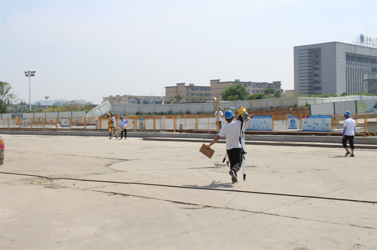 盾構(gòu)機(jī)在黑暗的地下按照設(shè)計(jì)線路掘進(jìn),全靠精確的測(cè)量定位。本次測(cè)量比武競(jìng)賽的內(nèi)容就是測(cè)量定位。競(jìng)賽分12個(gè)測(cè)站,往返距離400米左右,參賽隊(duì)員們需要帶著電子水準(zhǔn)測(cè)量?jī)x、銦鋼尺、三腳架等測(cè)量器械,展開測(cè)量定位,將地面已知點(diǎn)引導(dǎo)至井下未知點(diǎn),且誤差不超過2.5毫米,從而引導(dǎo)盾構(gòu)機(jī)按設(shè)計(jì)線路準(zhǔn)確掘進(jìn)。比賽不僅考驗(yàn)的參賽隊(duì)員的業(yè)務(wù)技能,同時(shí)也考驗(yàn)他們的團(tuán)隊(duì)合作。隨著裁判員一聲哨響,參賽隊(duì)員提著儀器迅速?zèng)_了出去,他們互相配合、默契協(xié)作,迅速找到各自的位置。在太陽的炙烤下,他們準(zhǔn)確放置測(cè)量?jī)x器,聚精會(huì)神調(diào)試,精準(zhǔn)展開測(cè)量工作,現(xiàn)場(chǎng)一片緊張熱烈的氛圍。最終,安徽三建大強(qiáng)路站測(cè)量隊(duì)以閉合差數(shù)值0.69的高分獲得第一名。