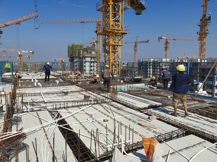 7月25日,在十二公司肥西優(yōu)步學(xué)府項目上結(jié)構(gòu)施工現(xiàn)場,為保證計劃工期,項目工人們戰(zhàn)高溫、斗酷暑,正在進行頂板上綁扎鋼筋及水電預(yù)埋,揮汗如雨奮戰(zhàn)在第一線