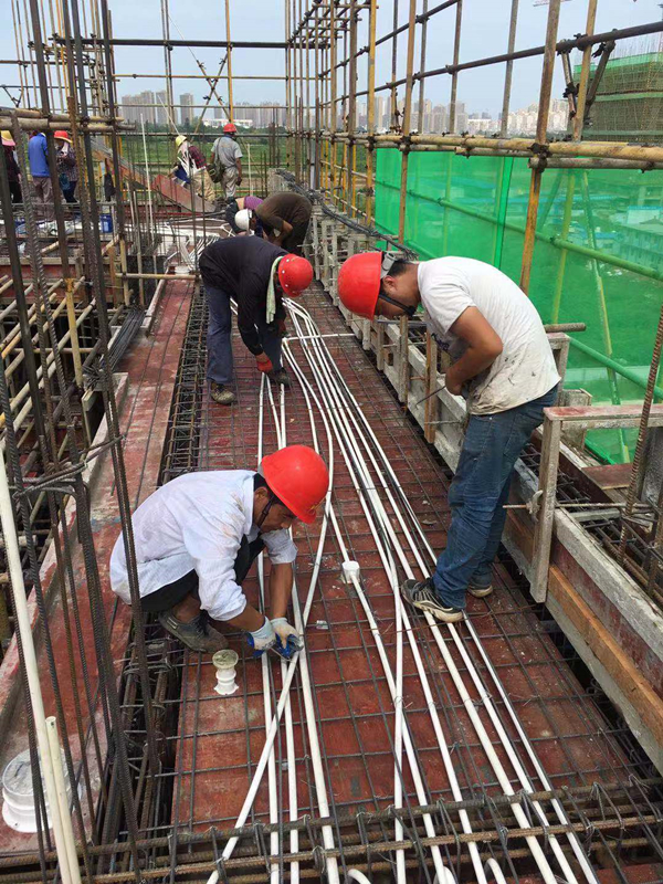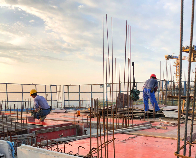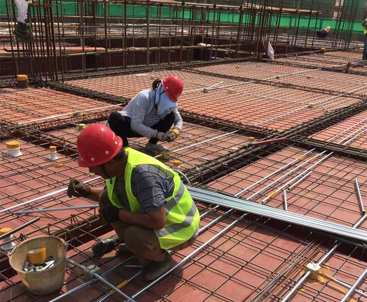 為保證施工工期,二公司、七公司共同承建的濱湖沁園項目鋼筋班組工人冒著高溫天氣綁扎鋼筋,項目管理人員跟班作業(yè)同時進行檢查。為防止管理人員及工人出現(xiàn)高溫中暑現(xiàn)象,項目制定了嚴(yán)格的作息時間,上午10:00-下午3:00時間段禁止室外作業(yè),以保證施工人員的身體健康。