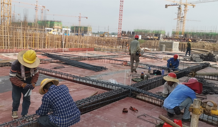 十一公司繁昌春谷熙岸、天長恒大一標(biāo)等項目現(xiàn)場工正在綁扎鋼筋、緊張作業(yè)