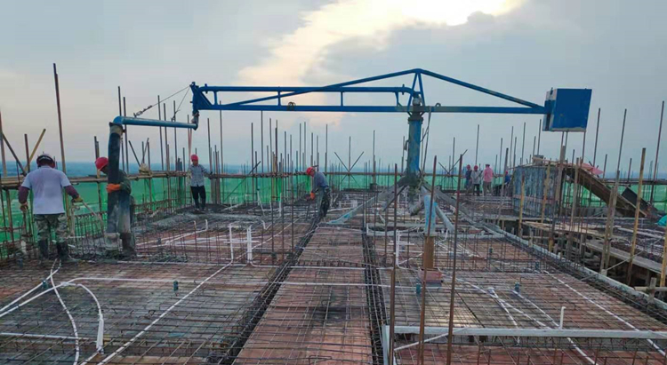 傍晚的固鎮(zhèn)華地公館項目現(xiàn)場依然高溫,項職工不畏酷暑正在開展混凝土澆筑作業(yè)
