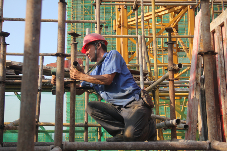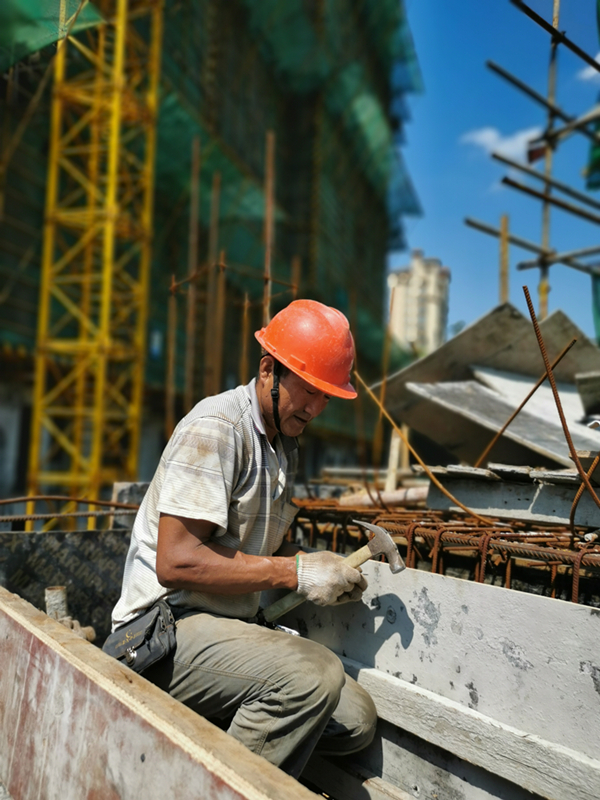 圖為九公司十里春風(fēng)項目一線職工頂著烈日奮戰(zhàn)在第一線