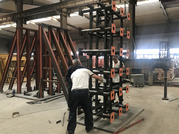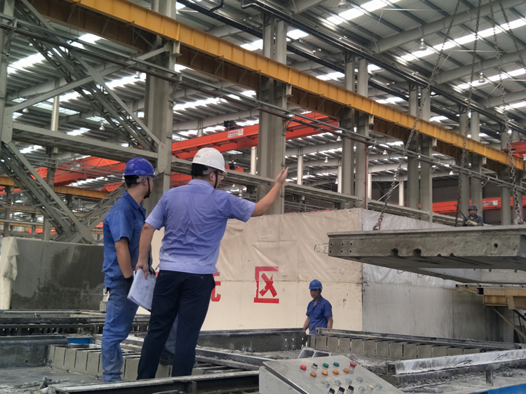 建筑工業(yè)公司生產(chǎn)車間機器轟鳴、熱浪滾滾,目前主要在為聚賢苑、明發(fā)、沁園供應(yīng)項目構(gòu)件
