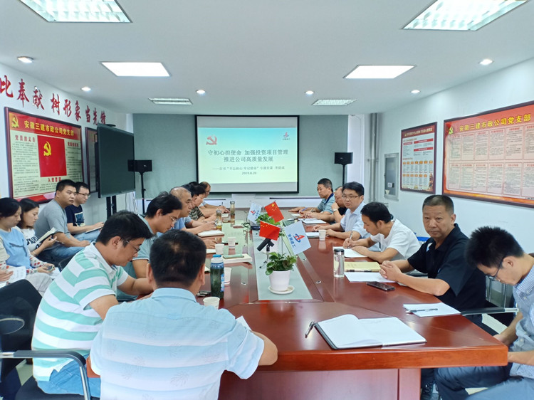8月20日下午,公司副總經(jīng)理李建成為市政公司和設(shè)備租賃公司廣大黨員干部職工講授《守初心擔(dān)使命,加強(qiáng)投資項(xiàng)目管理,推進(jìn)公司高質(zhì)量發(fā)展》的專題黨課。在市政公司會議室,來自市政公司和設(shè)備租賃公司的黨員、入黨積極分子及機(jī)關(guān)管理人員共20余人參加了黨課教育。